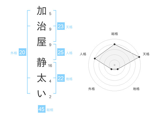加治屋 静太いさんの天格は23画の5点