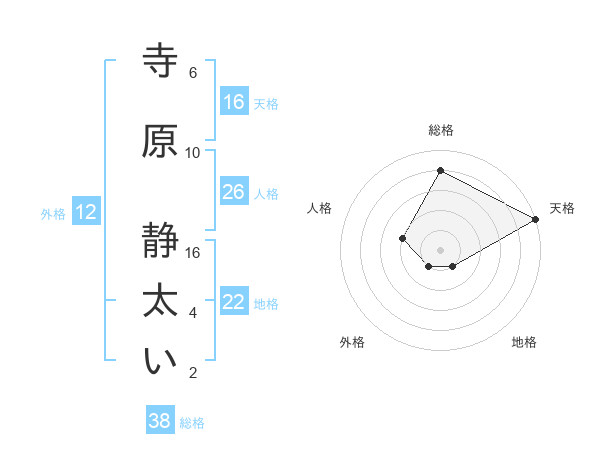 寺原 静太いさんの天格は16画の5点!