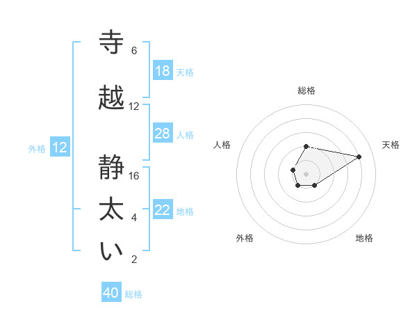 寺越 静太いさんを姓名の画数から五運を鑑定