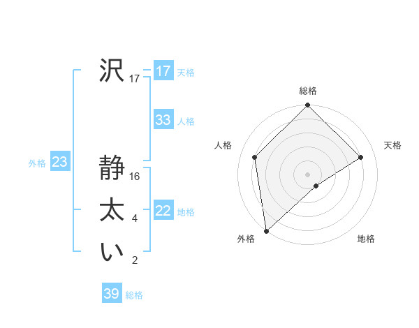 沢 静太いさんの外格は23画の5点!