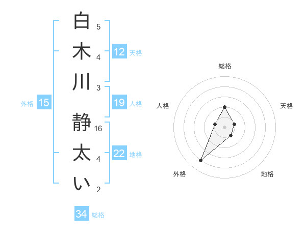白木川 静太いさんの外格は15画の4点!