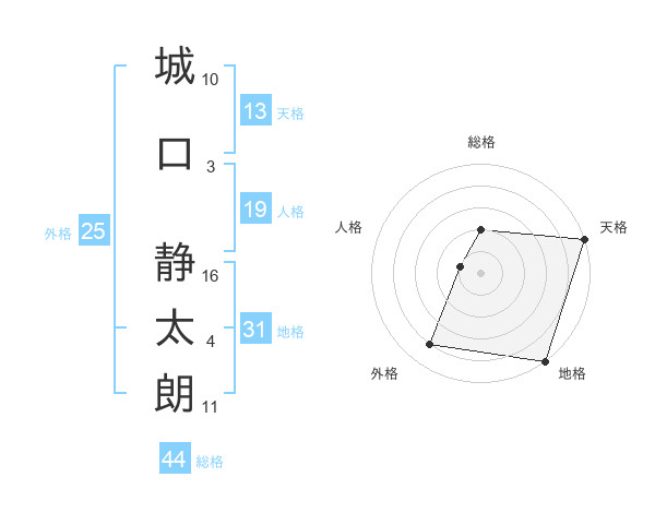 城口 静太朗さんを姓名の画数から五運を鑑定