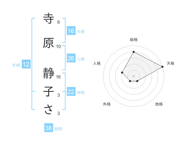 寺原 静子ささんの総格は38画の4点!