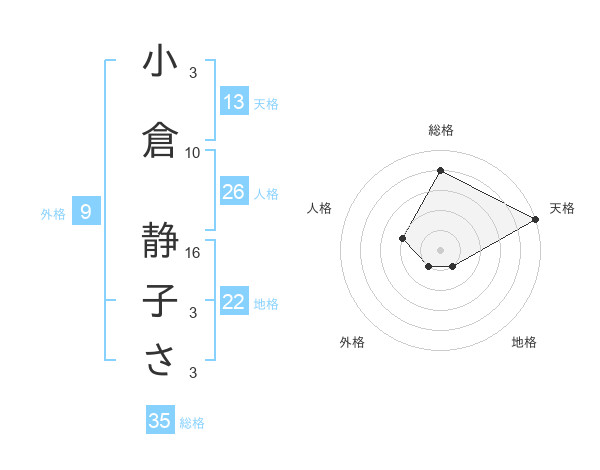 小倉 静子ささんを姓名の画数から五運を鑑定