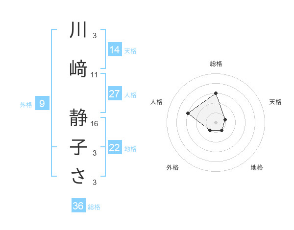 川﨑 静子ささんを姓名の画数から五運を鑑定