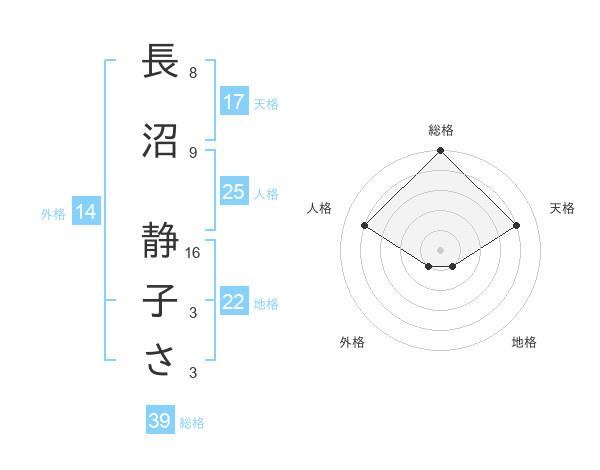 長沼 静子ささんを姓名の画数から五運を鑑定