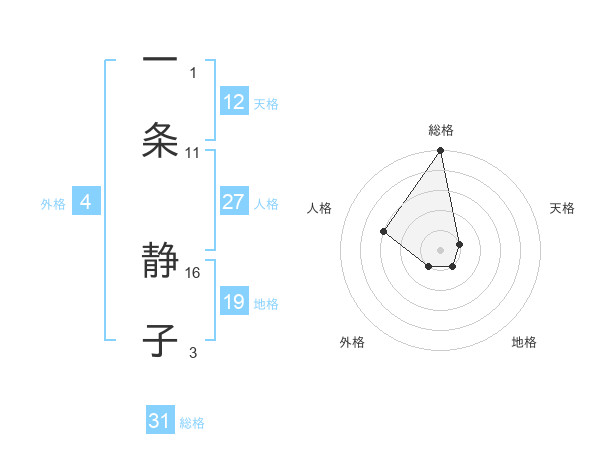 一条 静子さんの総格は31画の5点!