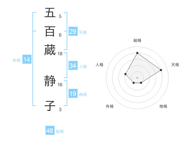 五百蔵 静子さんの総格は48画の4点!