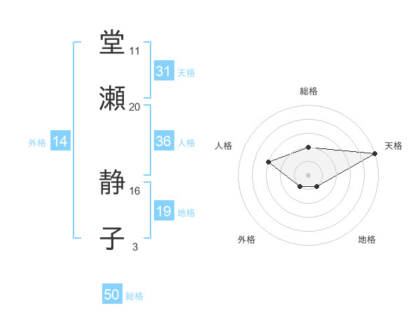 堂瀬 静子さんの総格は50画の2点!
