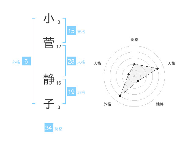 小菅 静子さんの総格は34画の2点!