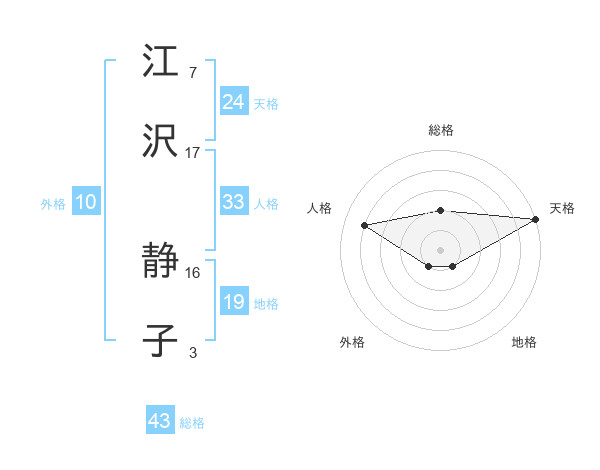 江沢 静子さんの総格は43画の2点!