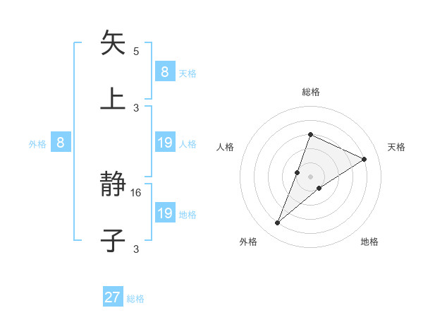 矢上 静子さんの総格は27画の3点!