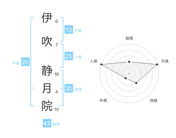 伊吹 静月院さんを姓名の画数から五運を鑑定