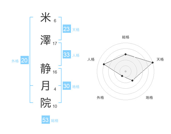米澤 静月院さんを姓名の画数から五運を鑑定