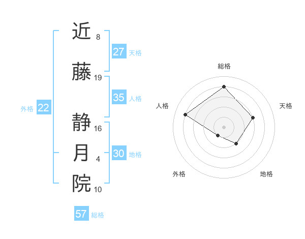 近藤 静月院さんを姓名の画数から五運を鑑定