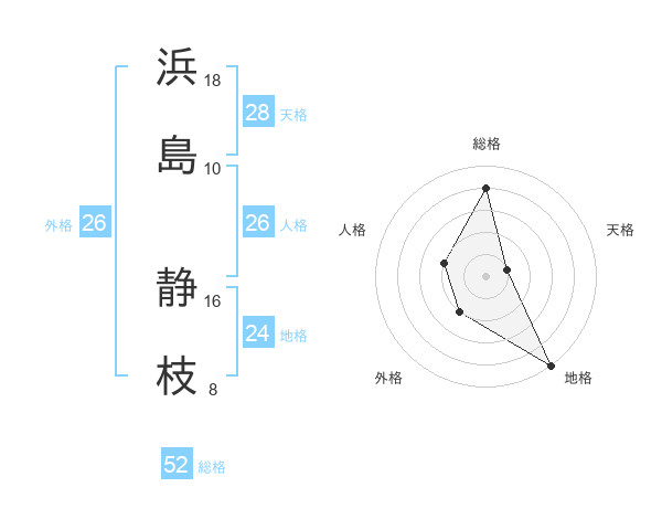 浜島 静枝さんの総格は52画の4点