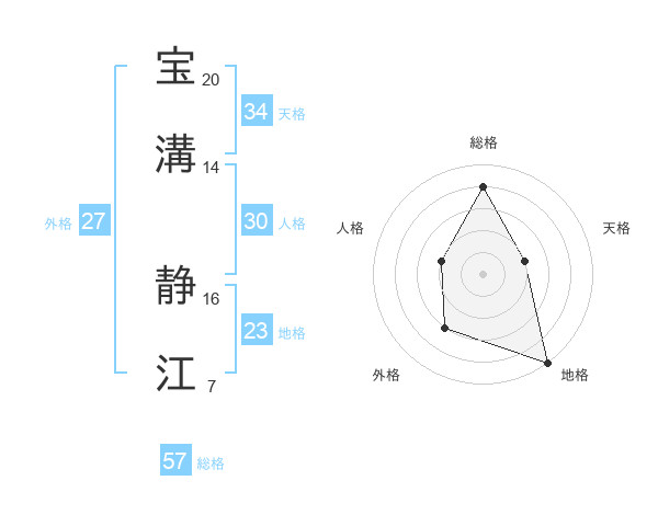 宝溝 静江さんの総格は57画の4点!