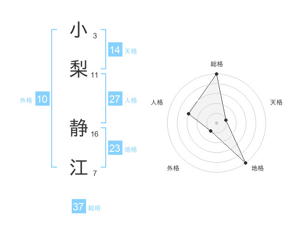 小梨 静江さんの総格は37画の5点!