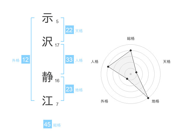 示沢 静江さんの総格は45画の4点!
