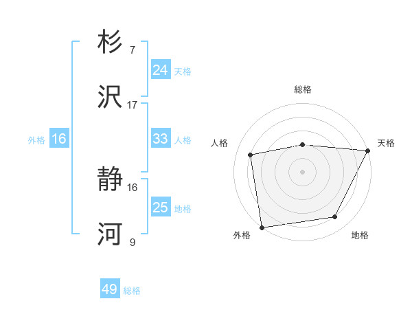 杉沢 静河さんを姓名の画数から五運を鑑定