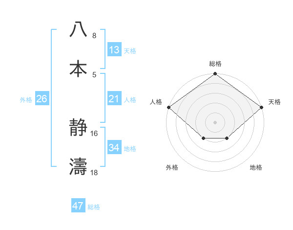 八本 静濤さんの総格は47画の5点!