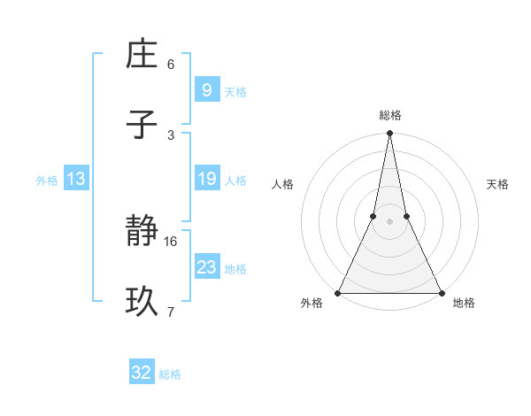 庄子 静玖さんの総格は32画の5点!