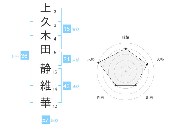 上久木田 静維華さんを姓名の画数から五運を鑑定