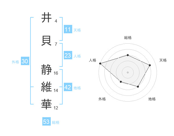 井貝 静維華さんを姓名の画数から五運を鑑定