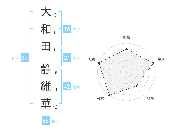 大和田 静維華さんを姓名の画数から五運を鑑定