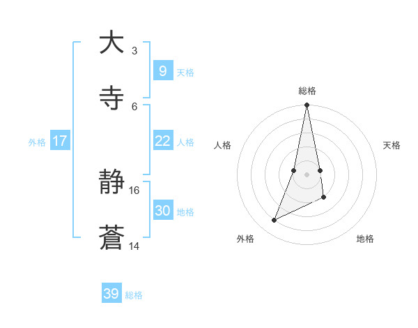 大寺 静蒼さんの総格は39画の5点!