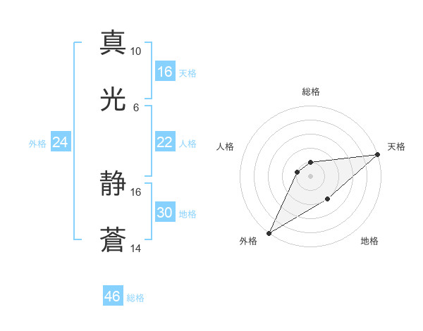 真光 静蒼さんの天格は16画の5点!
