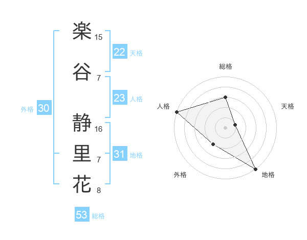 楽谷 静里花さんの総格は53画の3点!