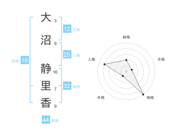 大沼 静里香さんを姓名の画数から五運を鑑定