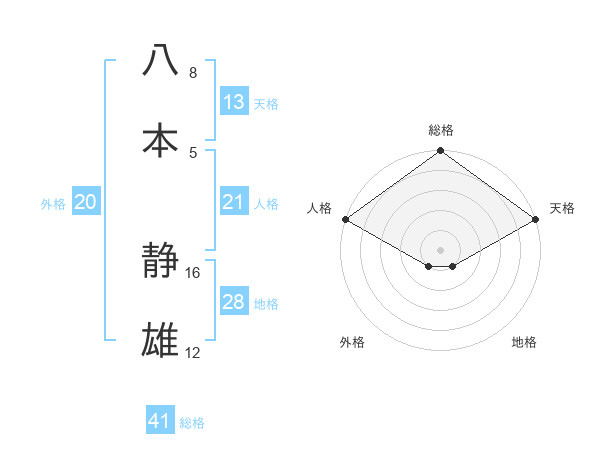 八本 静雄さんの天格は13画の5点!