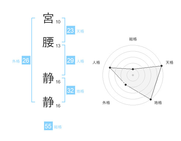 宮腰 静静さんを姓名の画数から五運を鑑定