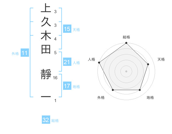上久木田 靜一さんを姓名の画数から五運を鑑定
