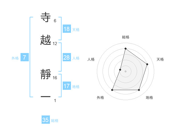 寺越 靜一さんの総格は35画の4点!