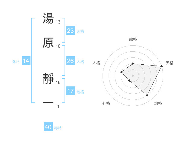 湯原 靜一さんを姓名の画数から五運を鑑定