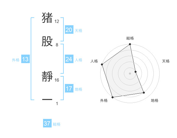 猪股 靜一さんを姓名の画数から五運を鑑定