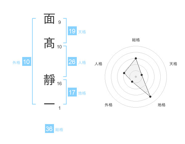 面髙 靜一さんの総格は36画の3点!