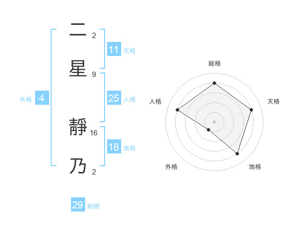 二星 靜乃さんの総格は29画の4点!