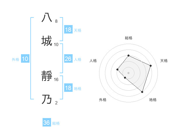 八城 靜乃さんの天格は18画の4点!