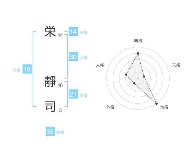 栄 靜司さんの地格は21画の5点!