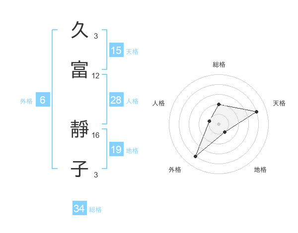 久富 靜子さんの総格は34画の2点!