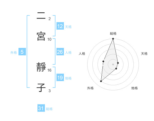 二宮 靜子さんを姓名の画数から五運を鑑定