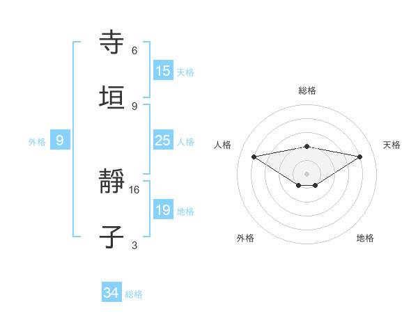 寺垣 靜子さんを姓名の画数から五運を鑑定