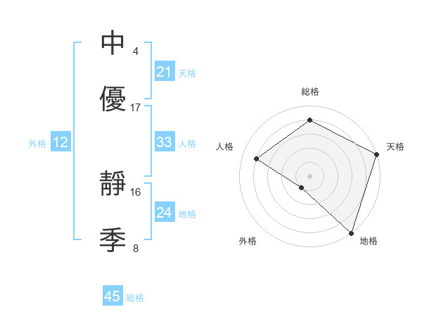 中優 靜季さんの総格は45画の4点!