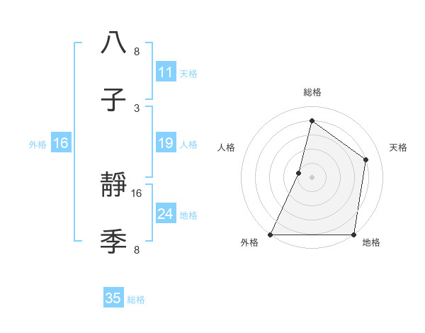 八子 靜季さんの総格は35画の4点!