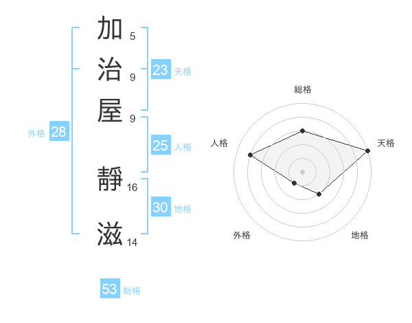 加治屋 靜滋さんを姓名の画数から五運を鑑定