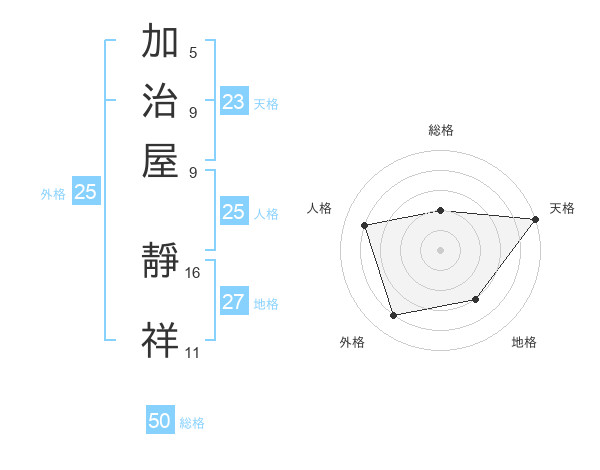 加治屋 靜祥さんの天格は23画の5点!
